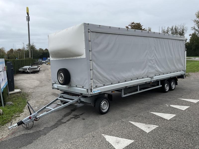 Zeer nette mooie schamelwagen, aluminium borden, huif, schuifzijllen , lengte 610 cm breedte 210 hoogte 180 cm, 3500 kg totaal gewicht, 2535 kg laadvermogen 965 kg,
